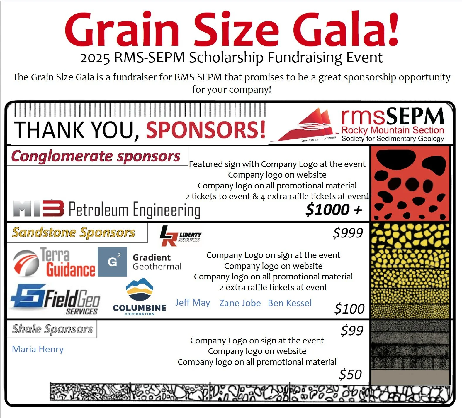 We owe a huge shout out to every sponsor who transferred their sponsorship of the cancelled Grain Size Gala to Student Scholarship donations. Your generosity and understanding is greatly appreciated!
